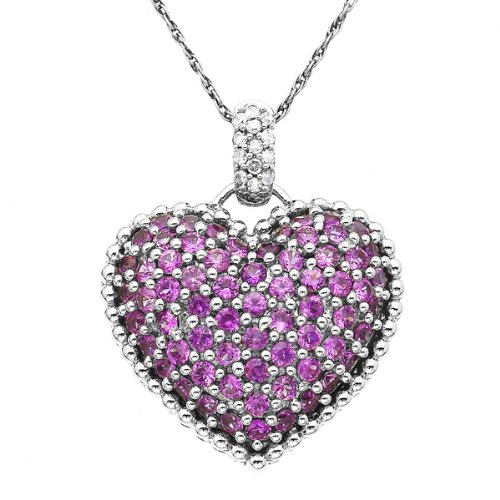 10k White Gold Created Pink Sapphire and Diamond-Accent Pave Heart Pendant, 18" Review
