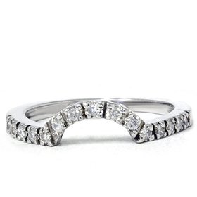 This ladies curved guard ring features 15 round brilliant cut natural diamonds. All diamonds are prong set in 14k white gold. .25ct total diamond weight.