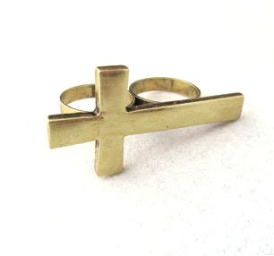 Vintage jewelry cross two finger ring gold plated art deco punk gothic Review