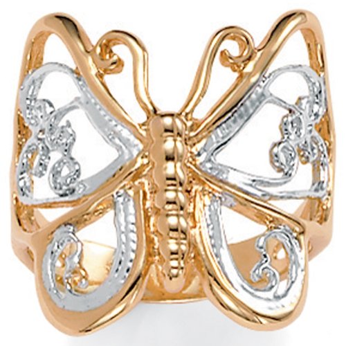 Perch this stunning butterfly on your finger. A tutone filigree butterfly is set on a ring of unique beauty. 14k Gold-Plated. Sizes 5-10. Palm Beach Jewelry Item #: 13244